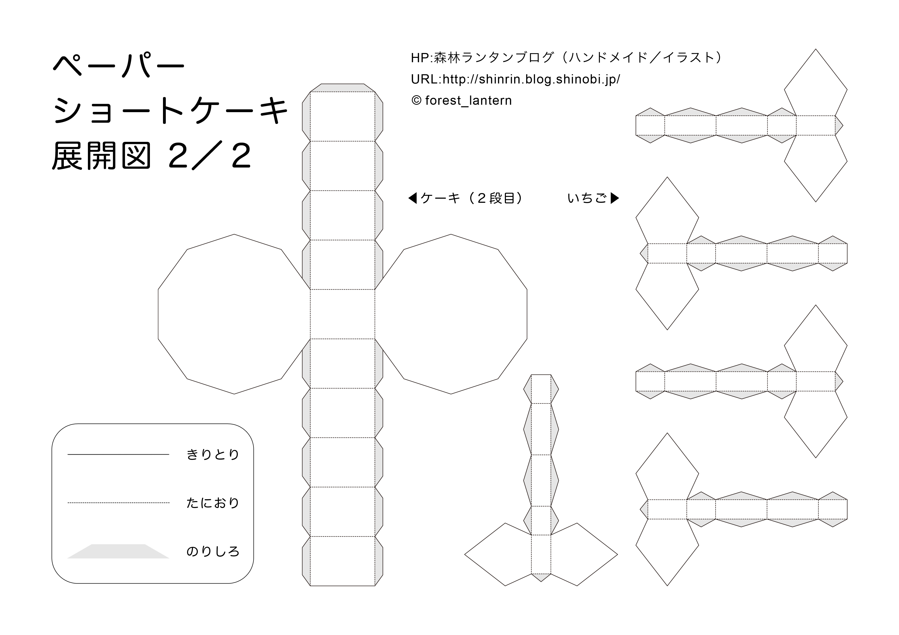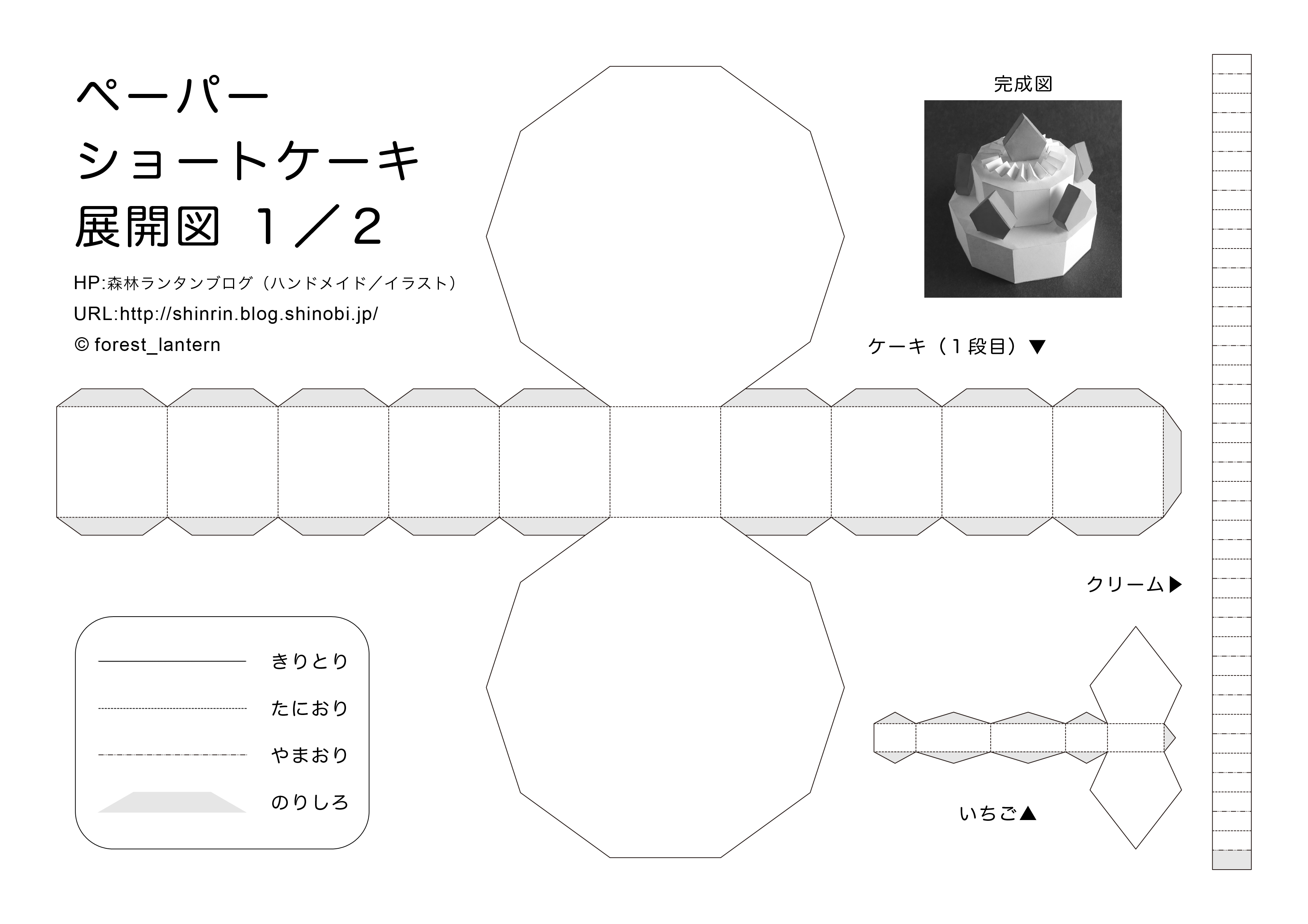 まずは下記のリンクから、ペーパーショートケーキの展開図(JPEG画像、横3508ピクセル×縦2480ピクセル)2ファイルをダウンロードして下さい。